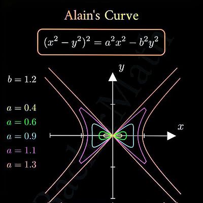 With LaTeX and pgfplots, you can quickly define Alain’s curve implicitly and easily render it with contour plots (requiring LuaLaTeX!) using a \foreach loop for parameters. Much of the code is just choosing the axis style. So, I plotted it with the same a and b parameters: