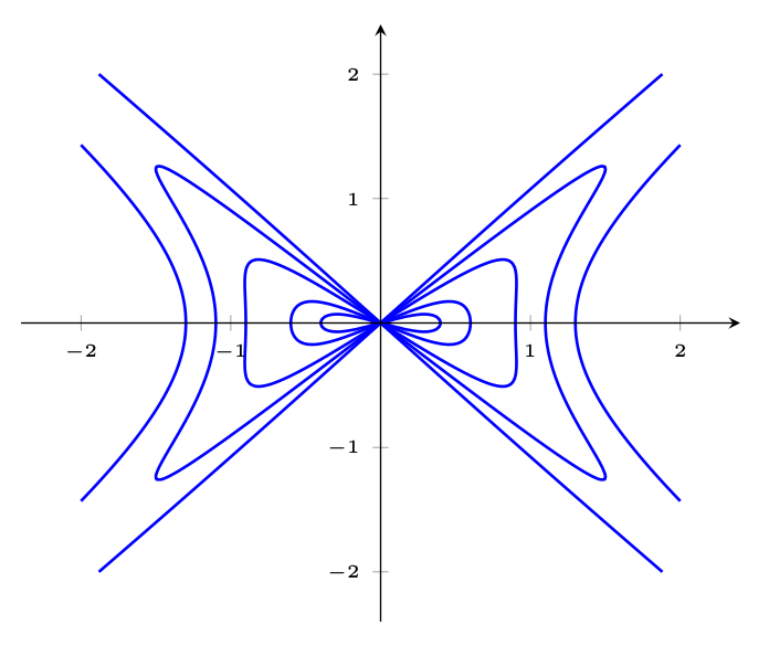 So it makes sense to plot that xy projection as 0-level contour plot of a 3D surface. The equation (x² – y²)² = a²*x² + b²*y² means plotting the zero level of f(x,y,a,b) = (x² – y²)² = a²*x² + b²*y².