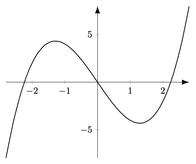 \addplot [domain=-2.8:2.8, smooth, thick] { x^3 - 5*x };